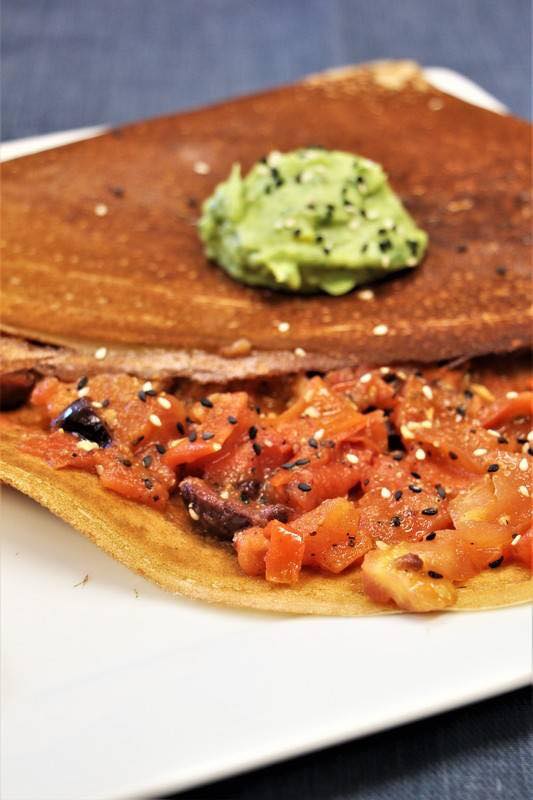 Spinach, tomato, mushroom and cheese crepe